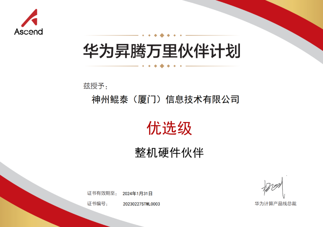 近期,神州数码旗下鸿越资本继取得华为鲲鹏领先级整机硬件伙伴认证之后,再获华为昇腾优选级整机硬件伙伴认证!这是鸿越资本与华为昇腾深化合作的硕果,也代表着神州数码信创业务在AI领域取得生态伙伴的充分认可。