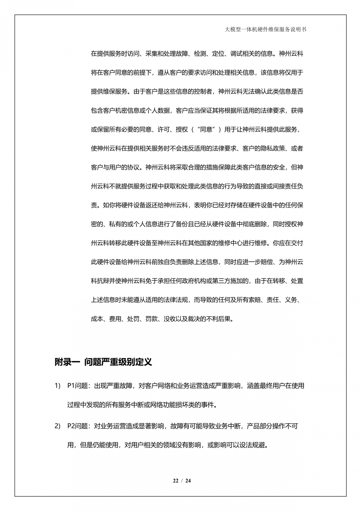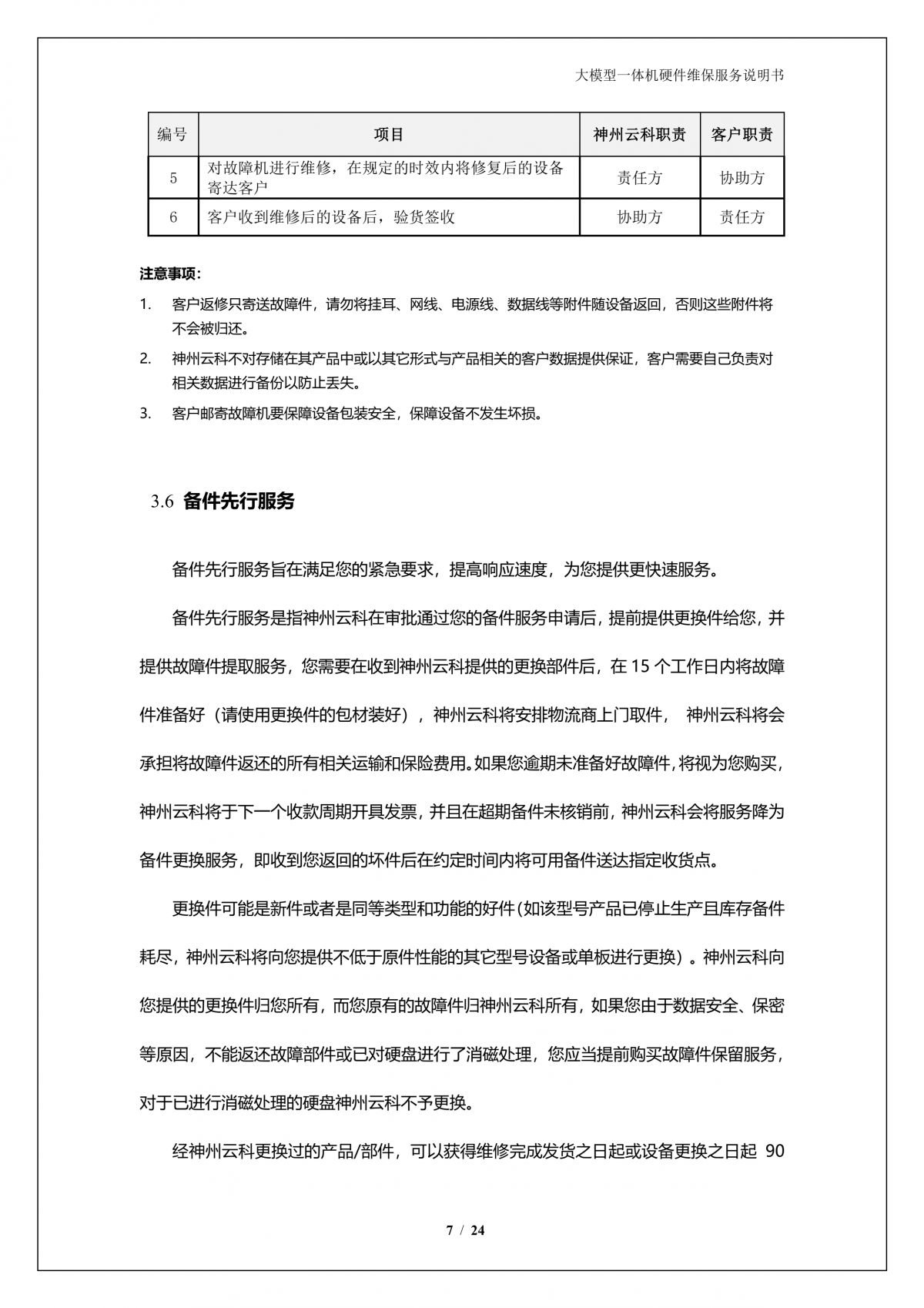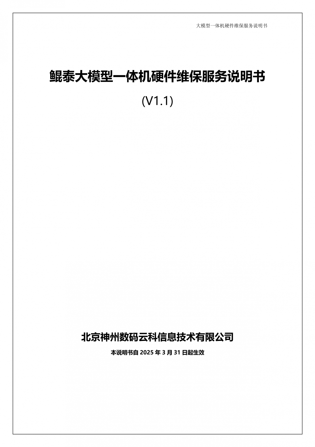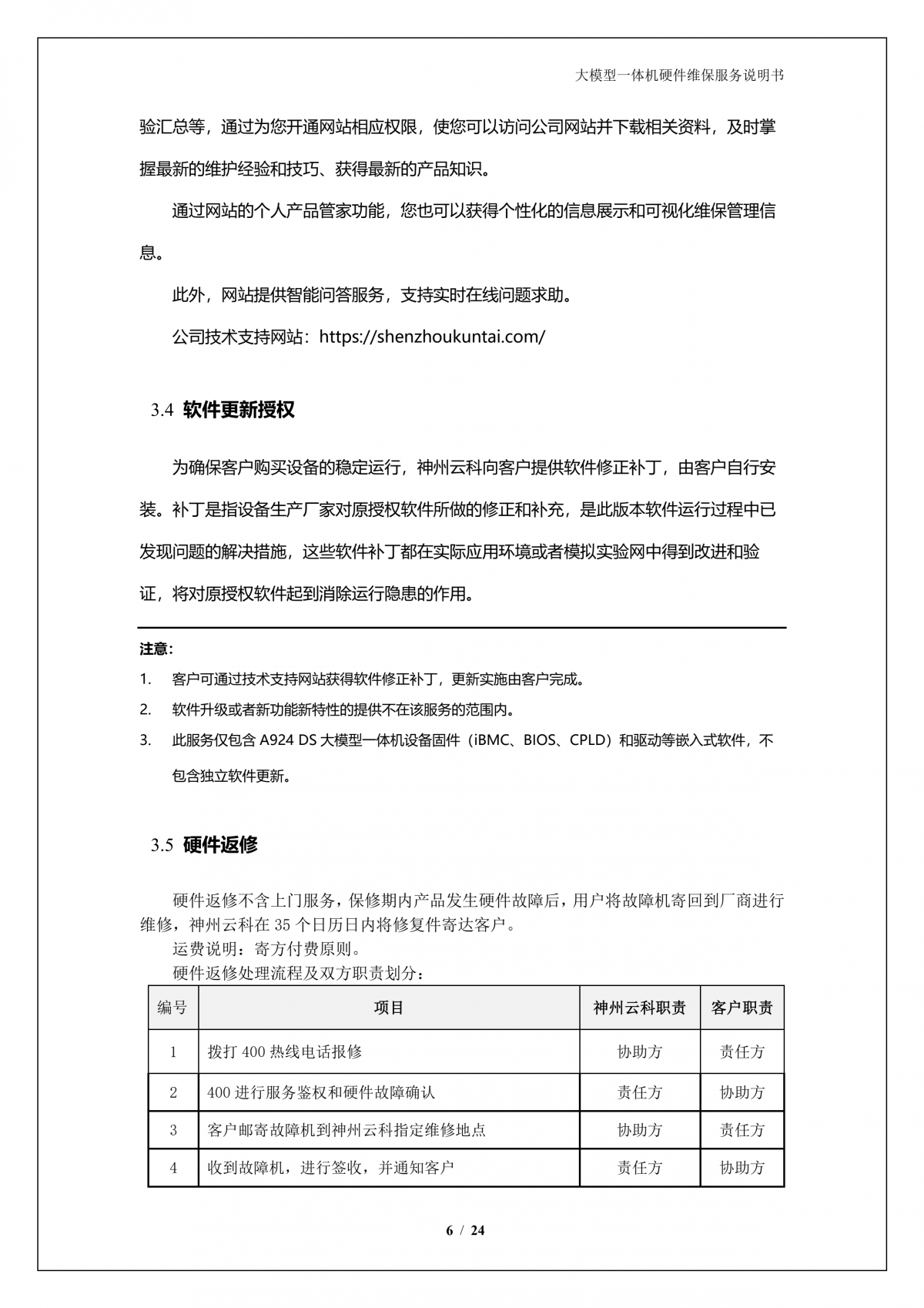 鸿越资本A924 DS大模型一体机硬件维保服务说明书_V1.1