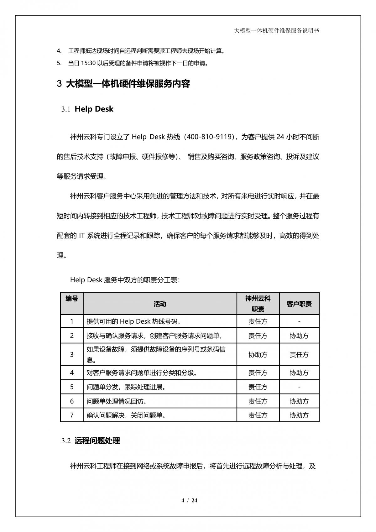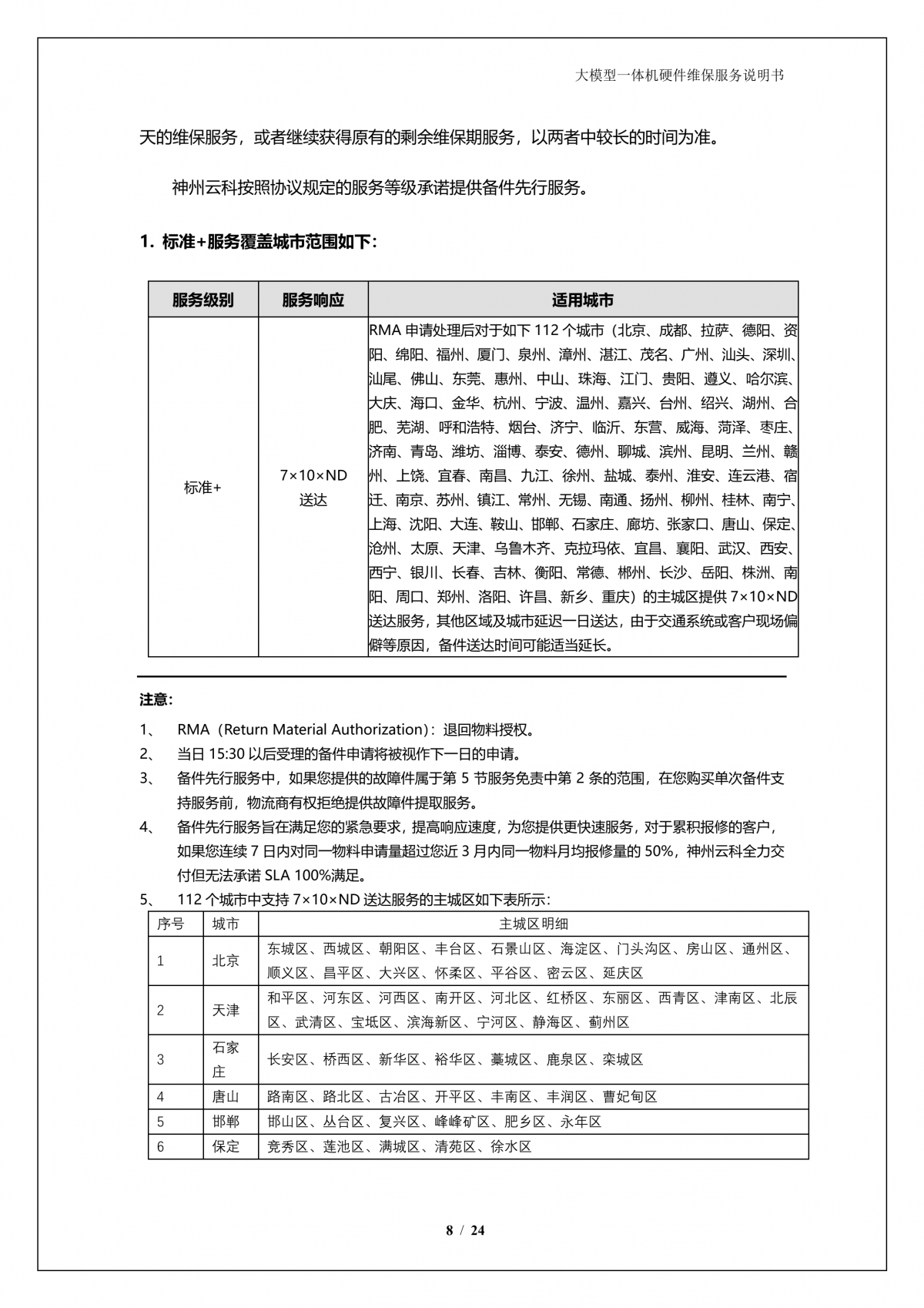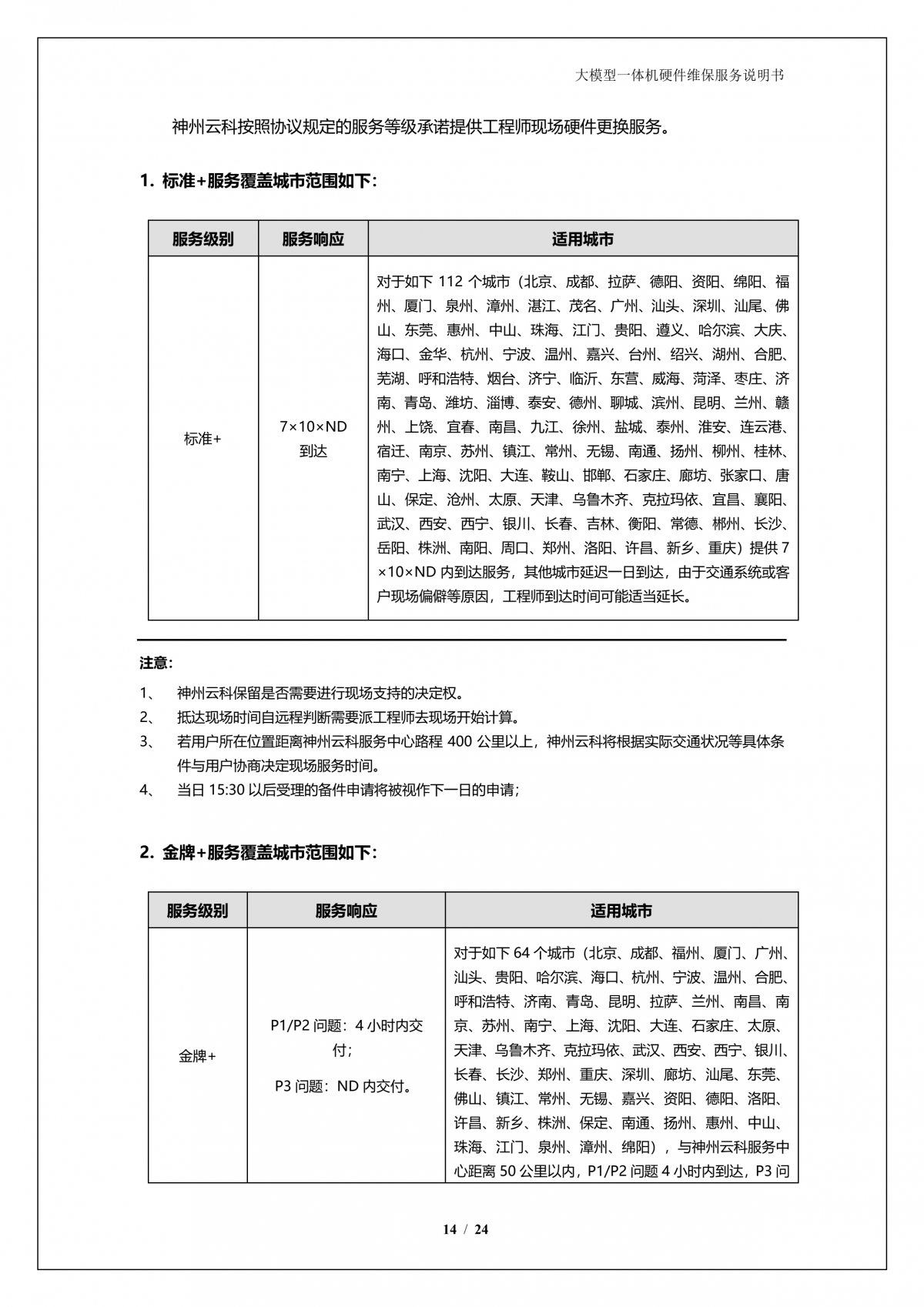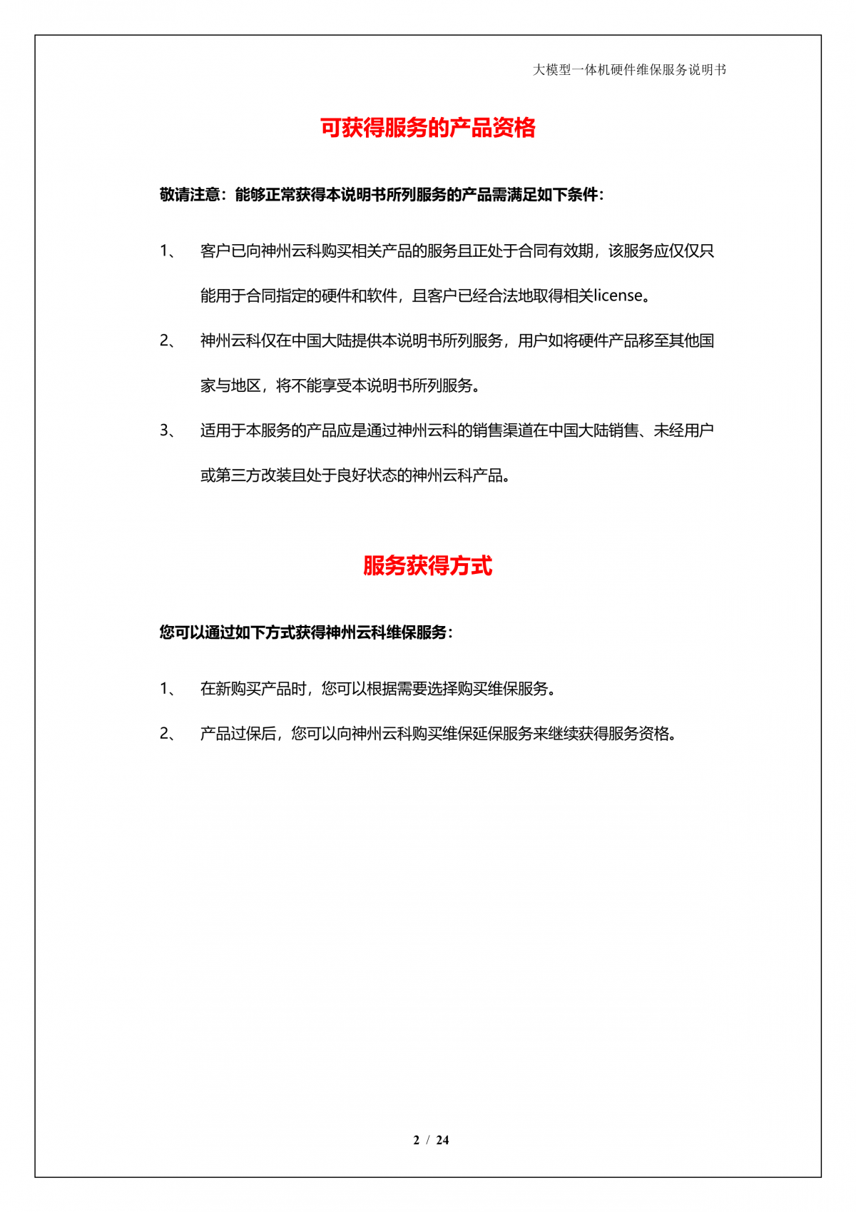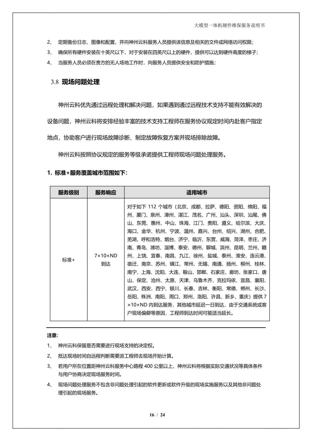 鸿越资本A924 DS大模型一体机硬件维保服务说明书_V1.1