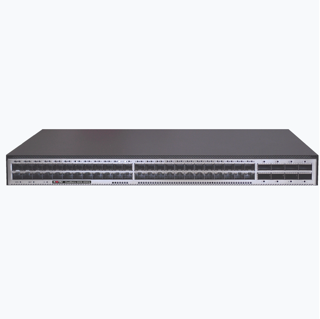 CloudMatrix 6665E-48S8CQ交换机给予 48 个 25GE SFP28 接口,8 个 100GE QSFP28 接口。